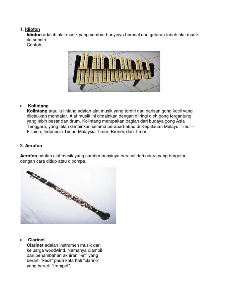 Gambang gambang dengan benar disebut gambang kayu merupakan instrumen seperti xilofon yang digunakan antara rakyat indonesia dan filipina selatan dalam gamelan dan kulintang dengan bilah kayu yang bertentangan dengan yang logam dari metalofon lebih khas dalam gamelan. Instrumen musik electrofon adalah musik yang sumber bunyinya dari daya listrik tentunya alat yang dipakai adalah alat modern zaman sekarang ini contoh electrofon yaitu piano keyboard dll mungkin hanya itu yang bisa saya sampikan kurang dan lebihnya saya mohon maaf dan jika ada pertanyaa hubungi saya dibagian kontak diatas dan saya ucapkan terima kasih. Selamat datang di artikel sepuluh contoh alat musik idiofonapakah kalian sedang ingin mengetahui tentang contoh contoh alat musik. Alat musik idiophone adalah alat musik yang suaranya bersumber dari getaran tubuh alat musik itu sendiri.