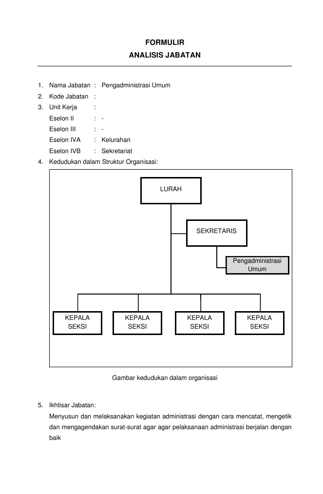 Contoh pengisian anjab 1. Yang dimaksud sebagai pemegang jabatan adalah bukan berarti seseorang yang mempunyai jabatan dalam pengertian struktural akan tetapi semua orang yang mempunyai tugas dan tanggung jawab terhadap. Sub bagian perencanaan evaluasi dan pelaporan 4. Contoh format penyusunan laporan analisa jabatan yang benar artikel ini akan membahas tentang informasi jabatan yang dimuat dalam laporan hasil analisa jabatanmelalui artikel ini diharapkan mampu memahami dan menjelaskan kembali mengenai informasi jabatan yang dimuat dalam laporan hasil analisa jabatan. Analisis jabatan pengertian makalah metode contoh pentingnnya analisis jabatan adalah kegiatan untuk menciptakan landasan atau pedoman bagi penerimaan dan penempatan karyawan. Doc contoh telaahan staf penataan pns cipta karya.