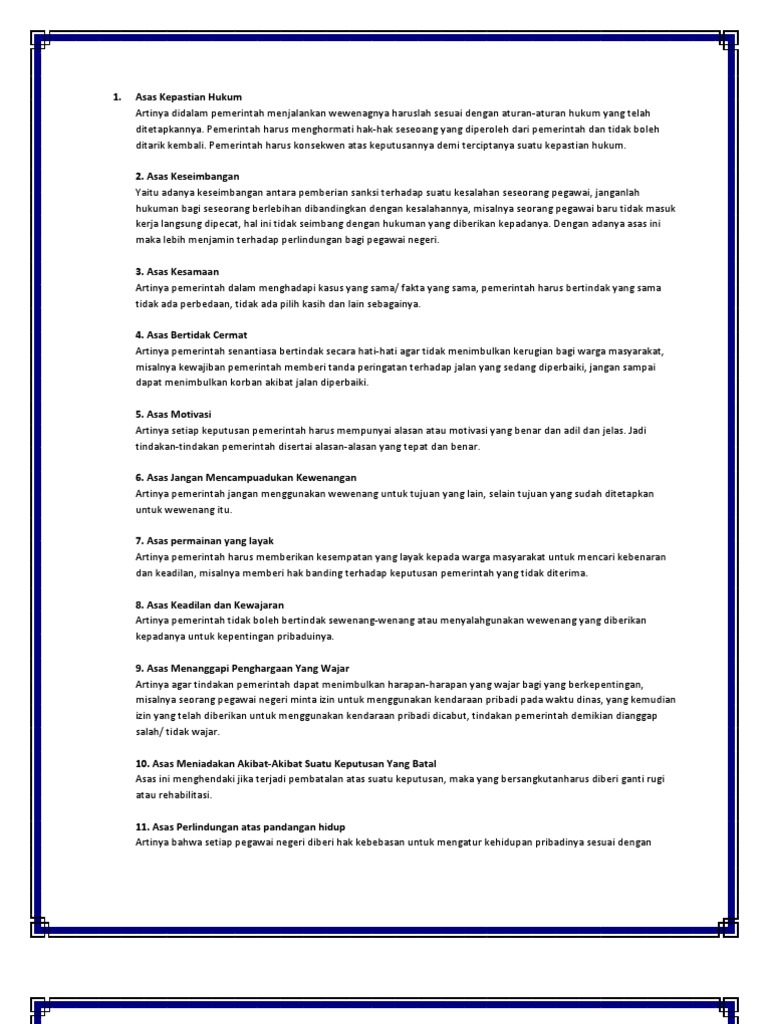 Ada beberapa asas asas hukum internasional dalam menjalin hubungan antar bangsa. Asas kemanfaatan adalah asas yang mengiring keadilan dan kepastian hukum tersebut diatas. Asas ini menyatakan bahwa demi kepastian hukum setiap keputusan tata usaha negara yang dikeluarkan harus dianggap benar menurut hukum karenanya dapat dilaksanakan lebih dahulu selama belum dibuktikan sebaliknya dan belum dinyatakan oleh hakim administrasi sebagai keputusan yang bersifat melawan hukum. Menurut uu administrasi pemerintahan aupb terdiri dari 8 delapan asas sebagai berikut. Kepastian hukum dan keadilan harus dilihat sebagai dua sisi yang tak dapat dipisahkan dari satu koin yang utuh. Selain itu keadilan sendiri tak akan bisa ditemukan apabila tak dibangun dalam kebenaran dan kejujuran dalam penerapan hukum.