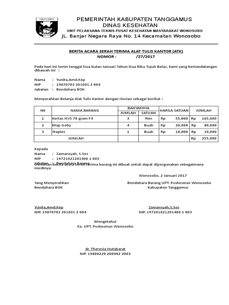 Contoh Berita Acara Atk Pkm Pembelian Barang Terbaru