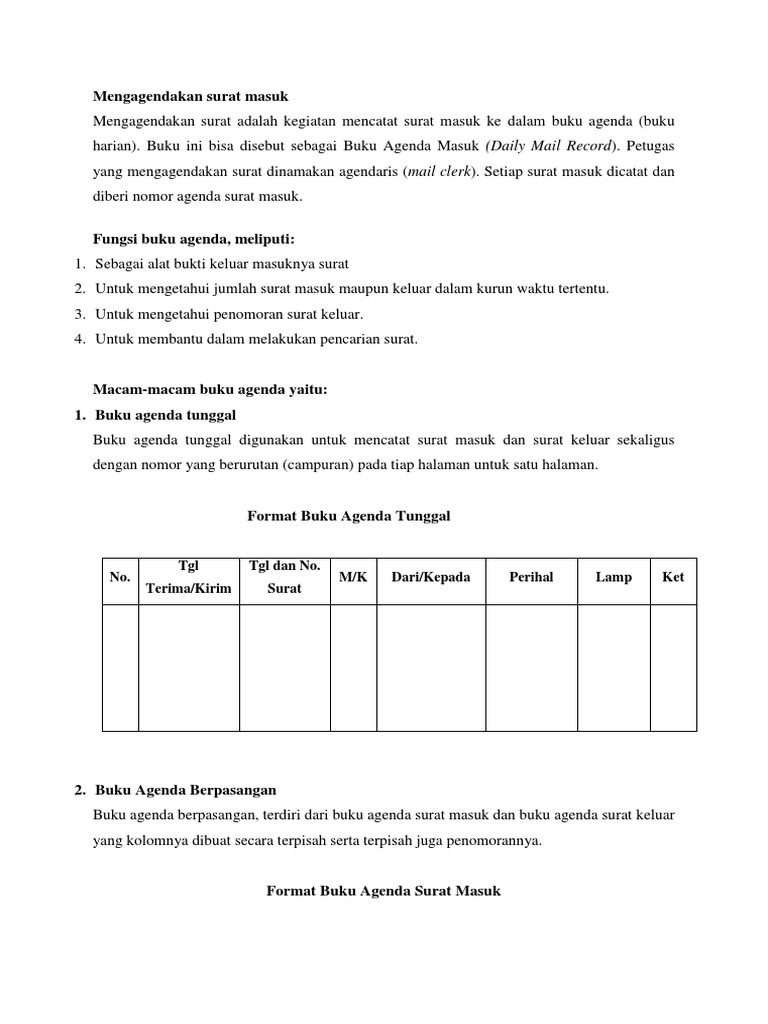 Firma mojo agung jln. Mudah mudahan isi postingan artikel pendidikan artikel surat artikel umum yang kami tulis ini. Contoh buku agenda surat masuk. Macam macam buku agenda yaitu1. Bian raz 15 maret 2016 2248. Agenda dengan format buku tunggal adalah buku yang digunakan untuk merekap aktivitas dan data tentang surat masuk dan surat keluar secara berurutan pada satu buku yang sama.