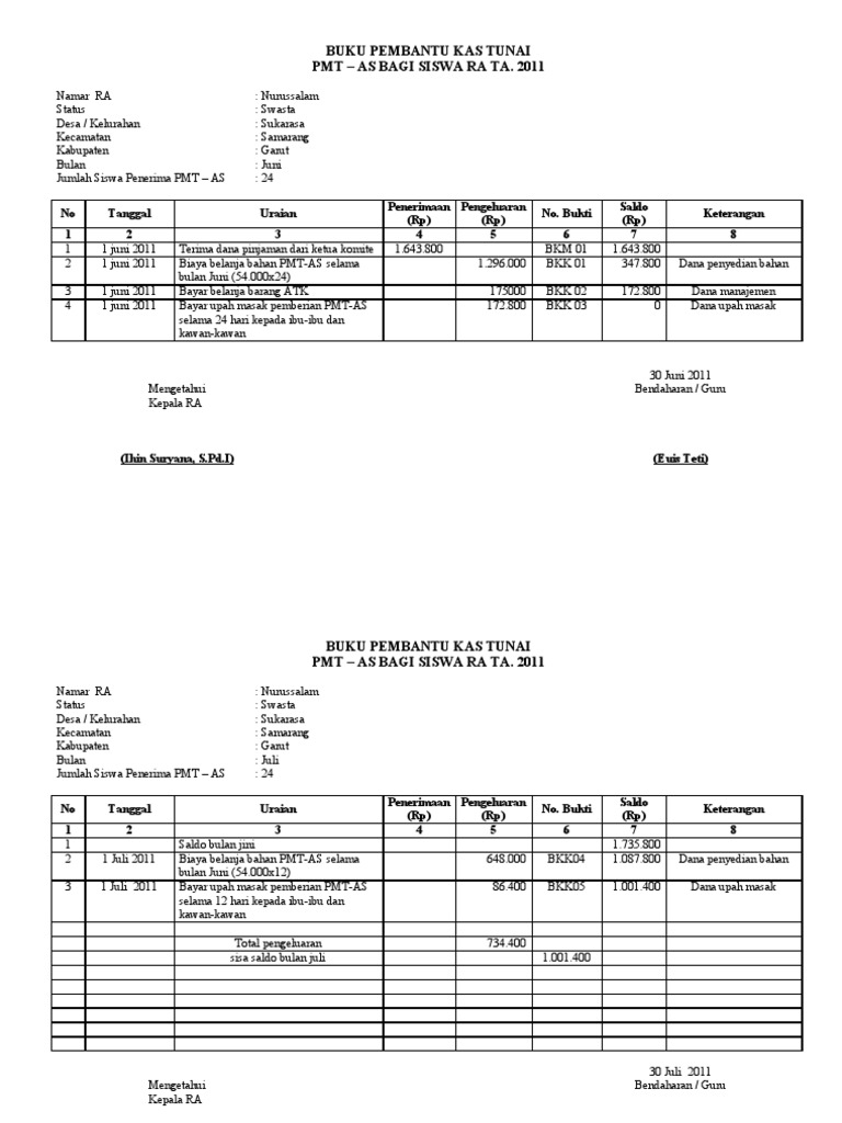 Semua berkas disimpan dan di share public di google drive untuk keamanan file dari virus jadi anda tidak perlu khawatir mendownload file nya karena sudah melalui scan antivirus oleh sistem google drive. Bentuk dari kas itu sendiri sangat beragam atau sangat variatif. Laporan bos terdiri dari buku kas umum buku pembantu kas buku bank dan buku pajak download file format xlsx microsoft excel. Format buku kas pembantu kegiatan di desa harus sesuai dengan format akuntansi dan dalam hal kegiatan di desa buku kas pembantu kegiatan ini harus mencakup no tanggal uraian kegiatan penerimaan yang terdiri dari bendahara bisa juga dari swadaya kemudian harus diberikan nomor bukti selain itu cakupan buku kas kegiatan untuk pengeluaran mencakup belanja barang dan jasa serta belanja modal. Berikut ini mari kita bahas contoh format buku kas umum. Buku besar pembantu digunakan untuk mencatat rincian akun tertentu yang ada di buku besar umum.