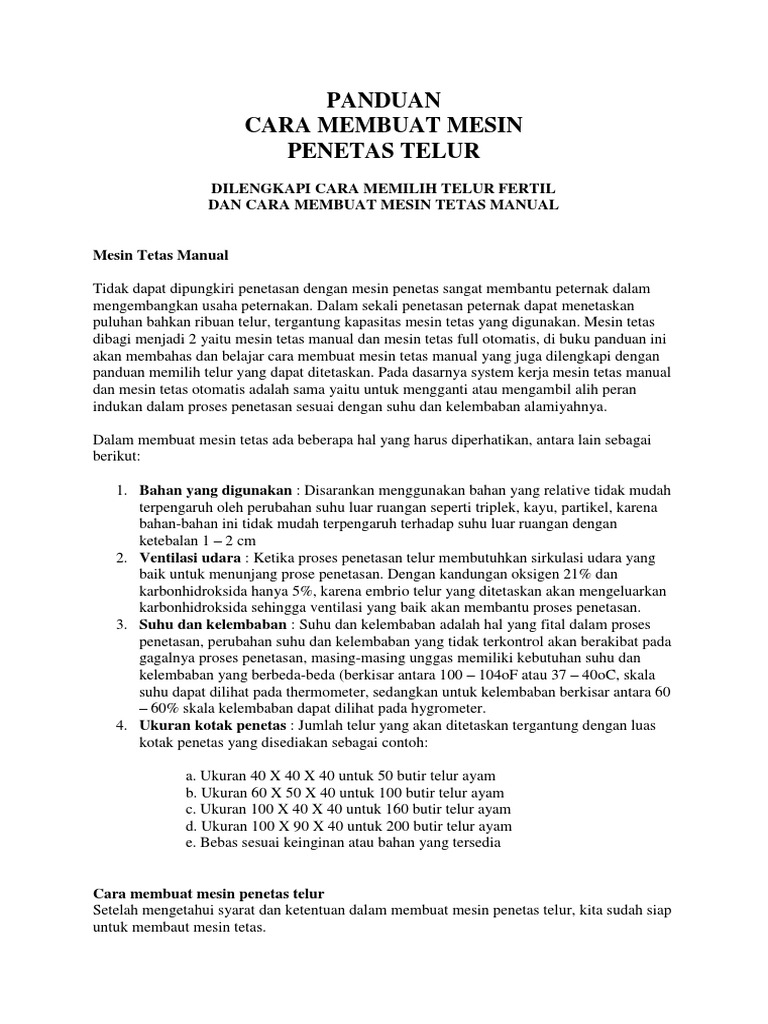 Contoh cara membuat mesin penetas telur. Buatlah kotak dengan ukuran berapa besar kapasitas telur yang akan ditetaskan. Cara yang kedua bisa menggunakan alat atau mesin penetascara ini tergolong mengeluarkan modalsebab jika kita tidak bisa membuat mesin penetas sendiriterpaksa harus membeli terlebih dahulu yang bisa juragan temukan banyak di pasaranbaca harga mesin penetas telur otomatis manual terbaru. Alat penetas telur ini dapat dengan mudah kita buat sendiri dengan biaya yang relatif murah. Informasi membuat mesin tetas telur dan perangkat2 menunjang yang di butuhkanuntuk memudahkan anda membuat mesin tetas telur sendiriuntuk usaha ternak ungg. Baiklah sekarang kita mulai membahas bagaimana cara membuat sebuah mesin penetas telur. 200 butir 400 butir dan 600 butir.