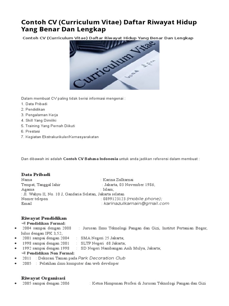 Contoh curriculum vitae menarik curriculum vitae atau biasa disingkat dengan cv yang dalam bahasa indonesia disebut daftar riwayat hidup. Inilah contoh curriculum vitae cv dalam bahasa inggris yang menarik baik dan benar. Pengertian referensi adalah segala bentuk teori atau argumentasi yang digunakan untuk menunjang sebuah ide gagasan teori atau argumentasi untuk mempertegas maksud yang ingin disampaikan melalui tulisan maupun lisan. Format lengkapnya berupa file doc dan pdf dapat anda download pada contoh cv bahasa inggris pada dasarnya sebuah curriculum vitae cv itu bisa kita buat dengan berbagai format tanpa harus menghilangkan unsur terpentingnya. Fotokopi skhun dilegalisir 4. Cv sangatlah penting dalam kehidupan terlebih di jaman yang serba digital ini.