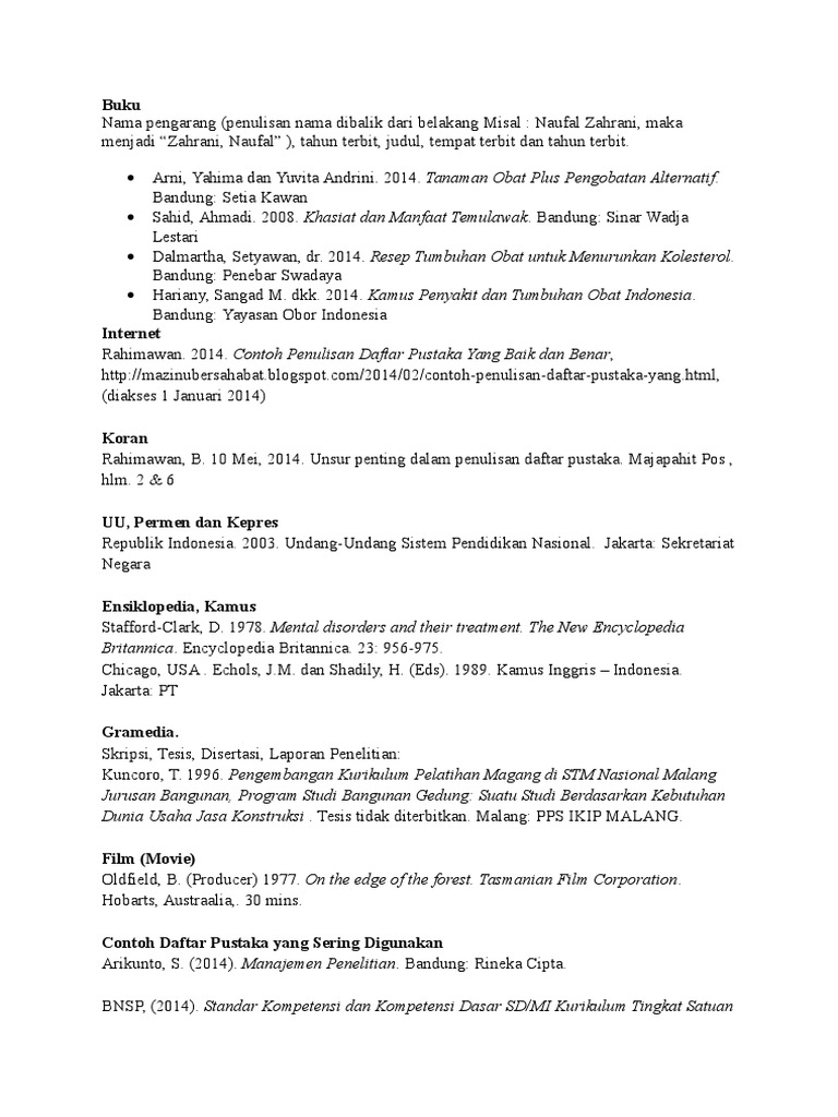 Contoh daftar pustaka dari skripsi. Karena penulisan daftar pustaka dari buku jurnal internet surat kabar skripsi tesis atau disertasi itu beda loh. Contoh daftar pustaka dari skripsi. Dalam hal ini yang paling utama adalah memperhatikan tanda baca dan urutannya. Penulisan daftar pustaka dari sumber buku. Selain daftar pustaka paket komplit yang tidak boleh ketinggalan sebagai pelengkapnya adalah contoh kata pengantar. Pengembangan media pembelajaran e comic integratif.