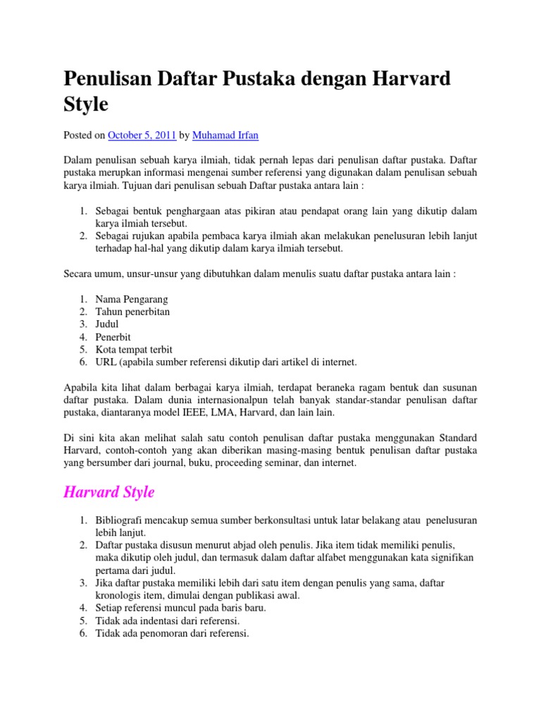 Sumber kutipan yang dinyatakan dalam karya ilmiah harus ada dalam daftar pustaka dan sebaliknya. Pada situs ini pula penerbit buku deepublish menawarkan kerjasama spesial yang sangat mudah cepat transparan dan tentunya menguntungkan kepada para pendidik indonesia. Dalam dunia internasionalpun telah banyak standar standar penulisan daftar pustaka diantaranya model ieee lma harvard dan lain lain. Harvard apa style harus diterapkan secara konsisten. Apabila sumber referensi atau kutipan berasal dari buku. Aturan harvard apa style 21 aturan penulisan sumber kutipan a.