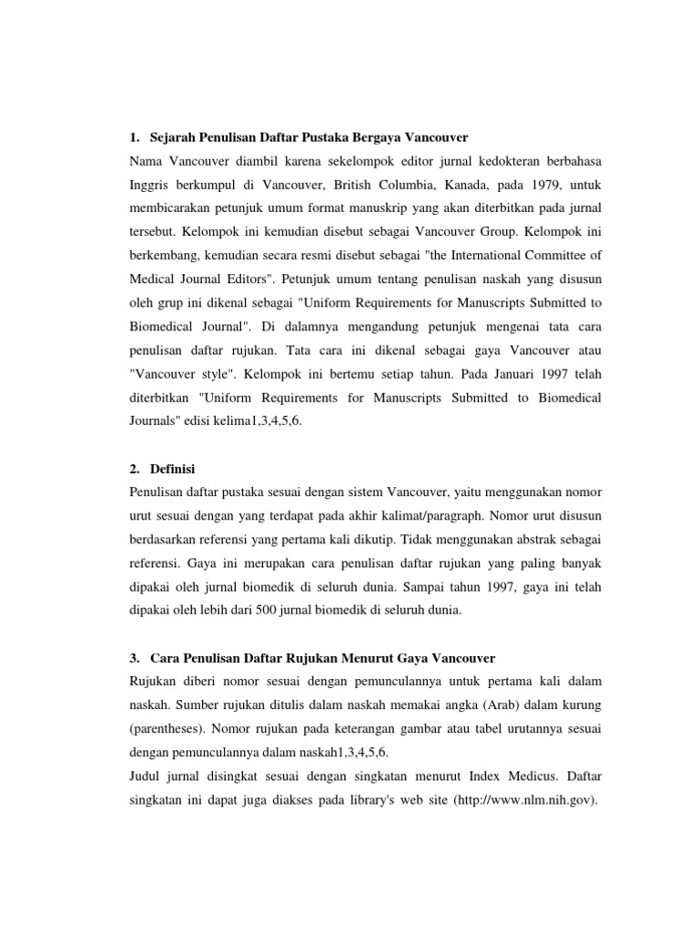 Contoh daftar pustaka vancouver. Contoh nomor kutipan ditulis superskripnomor diletakkan setelah kutipan. Atau style kombinasi lainnya. Langkah langkah dalam cara menulis daftar pustaka dengan metode vancouver adapun langkah langkah yang dapat ditempuh dalam cara menulis daftar pustaka dengan metode vancouver adalah sebagai berikut. Pastinya di setiap buku terdapat daftar pustaka yang biasanya berada di bagian belakang buku tersebut. Yak pada kesempatan kali ini kita akan membahas tentang contoh daftar pustaka beserta pengertian fungsi dan aturan penulisannya. Contoh daftar pustaka vancouver.