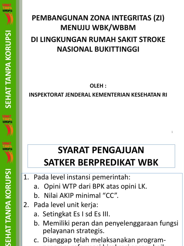 Dokumen rencana pembangunan zona integritas menuju wbkwbbm. Salah satu syarat untuk pencanangan pembangunan zona integritas adalah dimana pimpinan dan seluruh atau sebagian besar pegawainya telah menandatangani dokumen pakta integritas. Tindak lanjut rencana kerja pembangunan zona integritas menuju wilayah bebas korupsi wbk dan wilayah birokrasi bersih dan melayani wbbm di bappeda kota banda aceh tahun 2017. Apakah dalam dokumen pembangunan terdapat target target prioritas yang relevan dengan tujuan pembangunan wbkwbbm. Penyusunan dokumen rencana kerja pembangunan zona integritas menuju wbkwbbm harus memuat target terget prioritas yang relevan dengan tujuan pembangunan zona integritas menuju wbkwbbm 3. Sk tim kerja upt.