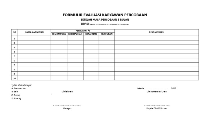Contoh form penilaian kinerja karyawan. Download disini keterangan. Seperti yang saya ketahui pengisisan form bisa untuk level mana saja tergantung perusahaan menginginkan feedback 360 derajat penilaian ini untuk siapa begitu 15 maret 2014 1550. Umumnya dilaksanakan oleh atasan langsung. Skala ditetapkan dari yang terendah hingga yang tertinggi. Contoh form standar penilaian kinerja karyawan. Penilaian kinerja karyawan adalah salah satu komponen kunci kesuksesan dalam mencapai tujuan perusahaan.