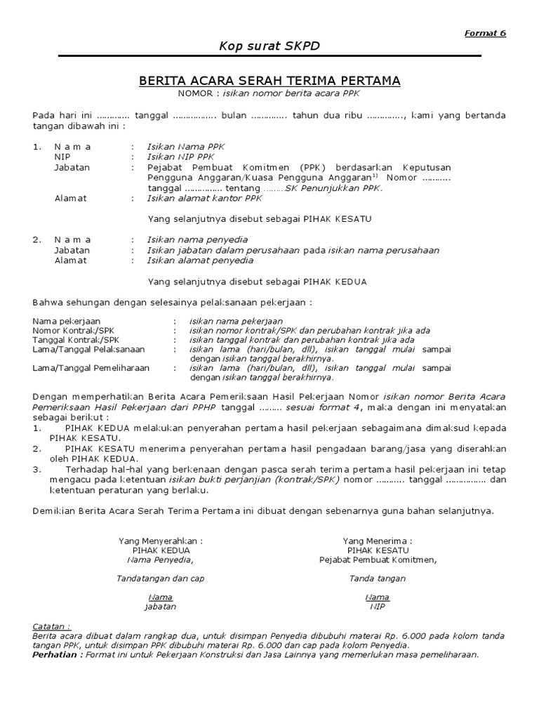 Contoh Berita Acara Serah Terima Pekerjaan Dari Ppk Ke Kpa