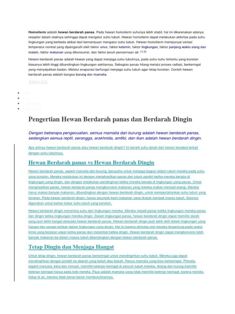 Hewan berdarah dingin adalah organisme di mana sumber panas fisiologis internal yang relatif kecil atau sangat penting diabaikan dalam mengendalikan suhu tubuh. Anda dapat membantu wikipedia dengan mengembangkannya. Contoh yang pertama hewan yang termasuk ke dalam hewan berdarah panas adalah mamalia seperti kambing sapi singa harimau primata dan lain sebagainya. Melalui evaporasi berfungsi menjaga suhu tubuh agar tetap konstan. 30 contoh hewan berdarah panas homoiterm hewan berdarah panas juga disebut homoiterm. Hewan berdarah panas hewan berdarah panas juga sering disebut dengan homeoterm.