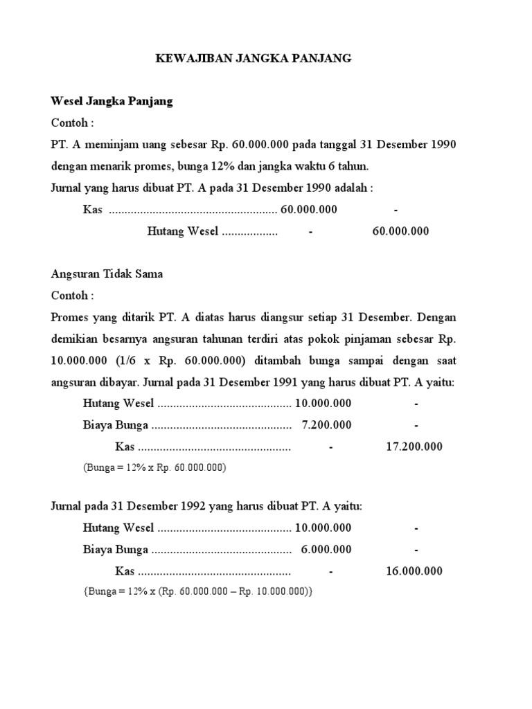 Hutang obligasi kewajiban pension wesel bayar jangka panjang kewajiban lease hutang hipotik hutang jangka panjang memiliki berbagai ketentuan untuk melindungi baik peminjam maupun pemberi pinjaman yang dinyatakan dalam indenture obligasi perjanjian wesel. Emas contoh pertama dari investasi jangka panjang sendiri adalah investasi pada emas. Sebagai salah satu logam mulia yang indah dan digemari banyak orang emas menjadi investasi yang cukup menguntungkan. Dalam operasional sebuah perusahaan rekening dengan pinjaman jangka panjang tidak akan pernah. Apakah usaha tersebut baru akan dimulai atau pada tahap pengembangan.