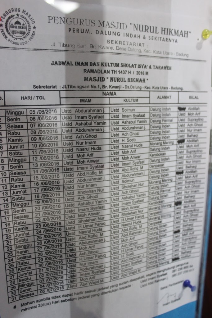 Untuk menjadi imam dan kultum sholat tarawih di masjid nurjannah. Selanjutnya dengan ini kami atas nama panitia ramadhan 1430 h masjid baiturrohman padaran glodogan sidomulyo bambanglipuro bantul bermaksud memohon bantuankesediaan bapak untuk berkenan menjadi imam shalat tarawih ramadhan 1430 h di masjid kami. Jelang buka puasa ramadhan 1432h 2011. This is the kind of information that should be shared around the web. Jadwal imam penceramah shalat tarawih m a sjid sabilul muttaqin tahun 2012 m 1433 h no hari tanggal ima. Ayi syaiful h sdr.