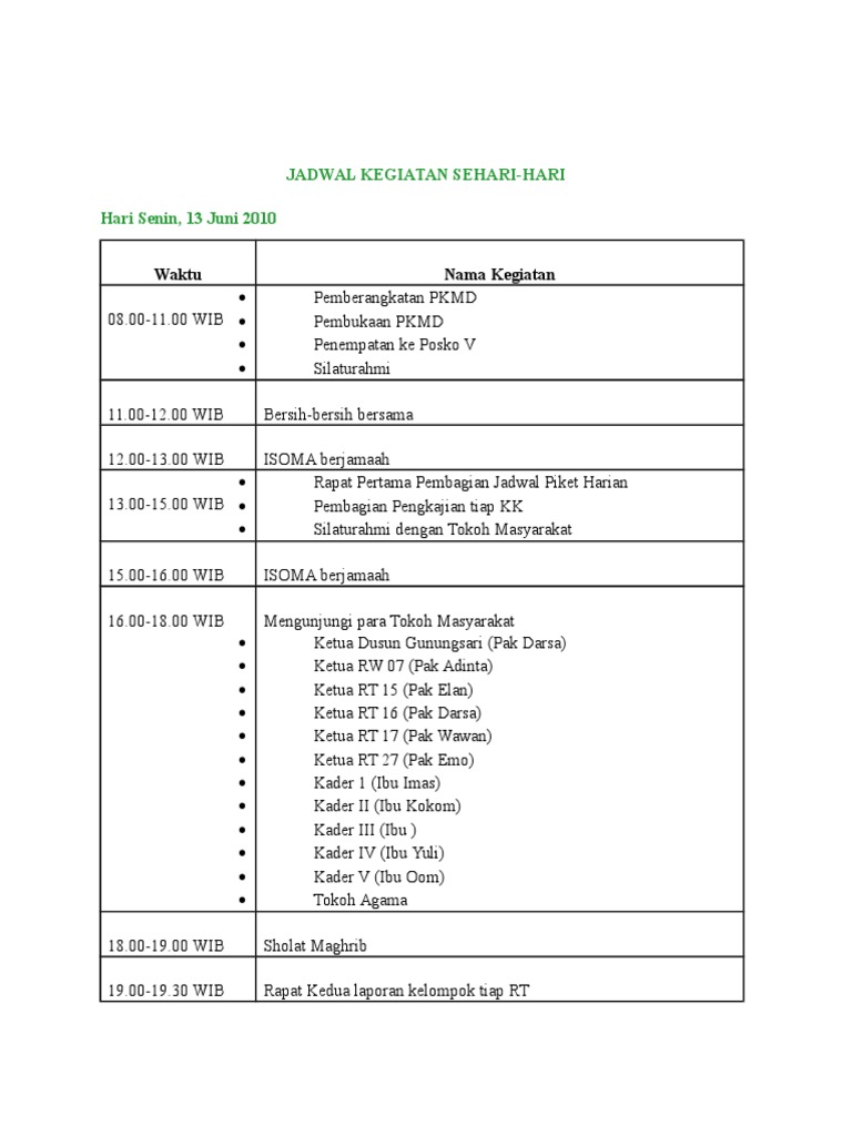 Contoh jadwal kegiatan sehari hari. Setiap malam sebelum tidur saya akan menceritakan rencana kegiatan apa yang akan dilakukan esok hari. Contoh jadwal kegiatan sehari hari dalam bahasa arab dan artinya add comment edit. Menjadwalkan kegiatan sehari hari juga memungkinkan anda mengatur dan memantau perilaku diri dengan mencatat apa saja yang harus dikerjakan dan telah anda selesaikan. Pada dasarnya daily activity adalah rangkaian aktivitas dari bangun tidur di pagi hari sampai tidur lagi pada malam hari dalam bahasa inggris. I always get up at 5 am every morning. Akan tetapi contoh text dibawah ini tetap menjadi referensi yang baik jika teman teman dirumah ingin membuat kegiatan sehari hari dalam bahasa inggris.