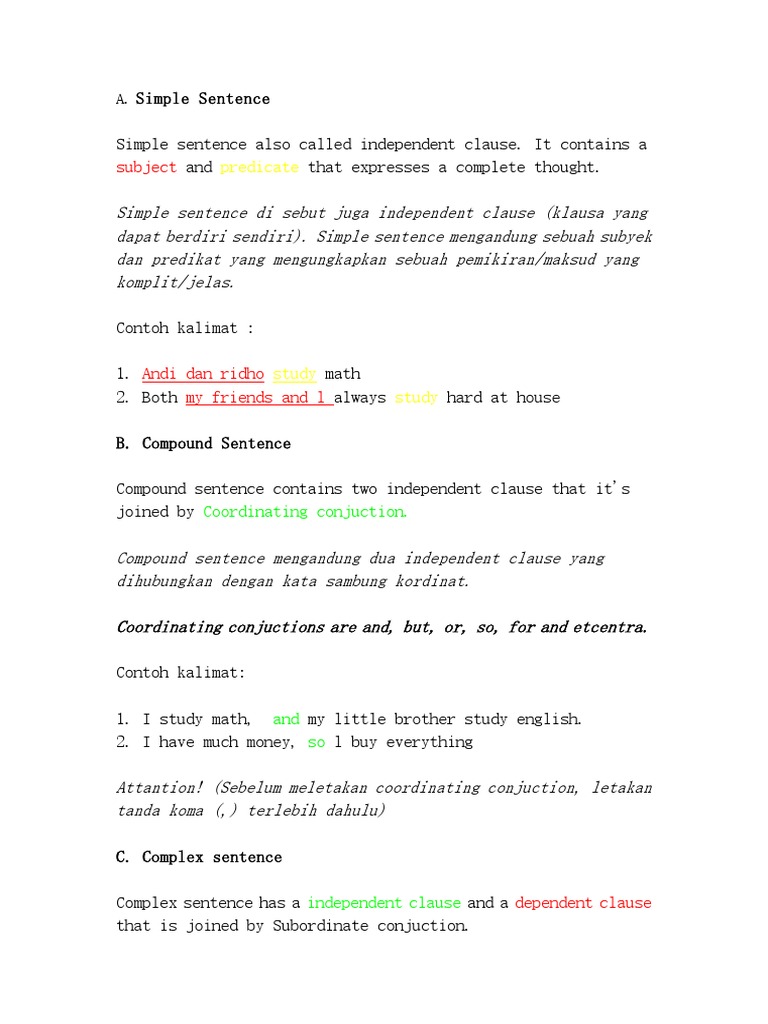 Nah biar bisa lebih dimengerti mari kita lihat 20 contoh compound sentences dan artinya berikut agar kita bisa mengerti bagaimana ke 7 kata gabung diatas digunakan untuk mengkombinasikan 2 kalimat sederhana menjadi kalimat gabung. Contoh kalimat complex sentence dalam bahasa inggris dan artinya setelah sebelumnya kita membahas mengenai pengertian serta penjelasan dari kalimat complex dalam bahasa inggris sekarang akan kita lanjutkan dengan berbagai contoh kalimatnyalangsung saja yuk kita simak bersama sama.
