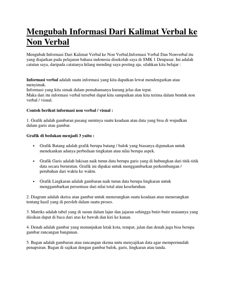 Untuk kalimat yang background kuning itu adalah contoh dari kalimat non verbal sedangkan untuk kalimat yang background biru itu adalah contoh dari kalimat verbal round up. Dari contoh kalimat diatas dapat kita simpulkan bahwa semua kalimat diatas menggunakan kata kerja verb sebagai predikatnya yaitu. Dia cantik saya ke kantor bukan kalimat verbal susunan dari kalimat ini yaitu terdiri dari s p subyek dan predikat dengan syarat. Komunikasi verbal dan non verbal secara sederhana komununikasi adalah proses pertukaran pikiran atau penyampaian pesan dari penyebar pesan komunikator ke penerima pesan komunikan dengan tujuan tertentu. Komunikasi verbal merupakan suatu bentuk komunikasi yang disampaikan oleh komunikator kepada komunikan dengan menggunakan cara tertulis atau dengan cara lisan. Im not from rusia.