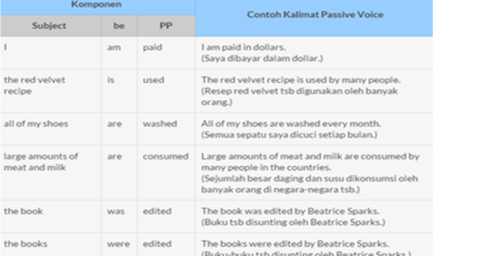 Activethe test was done by them. Tony meets them everyday tony memenuhi mereka sehari hari. Dibawah ini adalah contoh dari kalimat active voice dan pasive voice yaitu. Hasil akhirnya dapat dilihat di internet people rarely do this intentionally. Apakah sahabat telah mampu menguasai passive voice secara maksimal. Activea cake is being made by my mother.