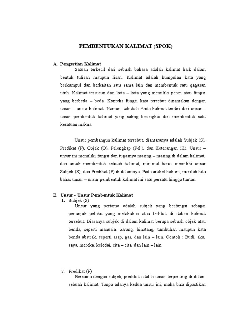 Contoh kalimat spok suatu kalimat yang baik dan benar akan memiliki unsur antara lain pelaku subjek s kata kerja predikat p yang dikenai pekerjaan objek o keterangan k hingga pelengkap p. Kalimat ambigu pengertian jenis contoh faktor menurut para ahli.