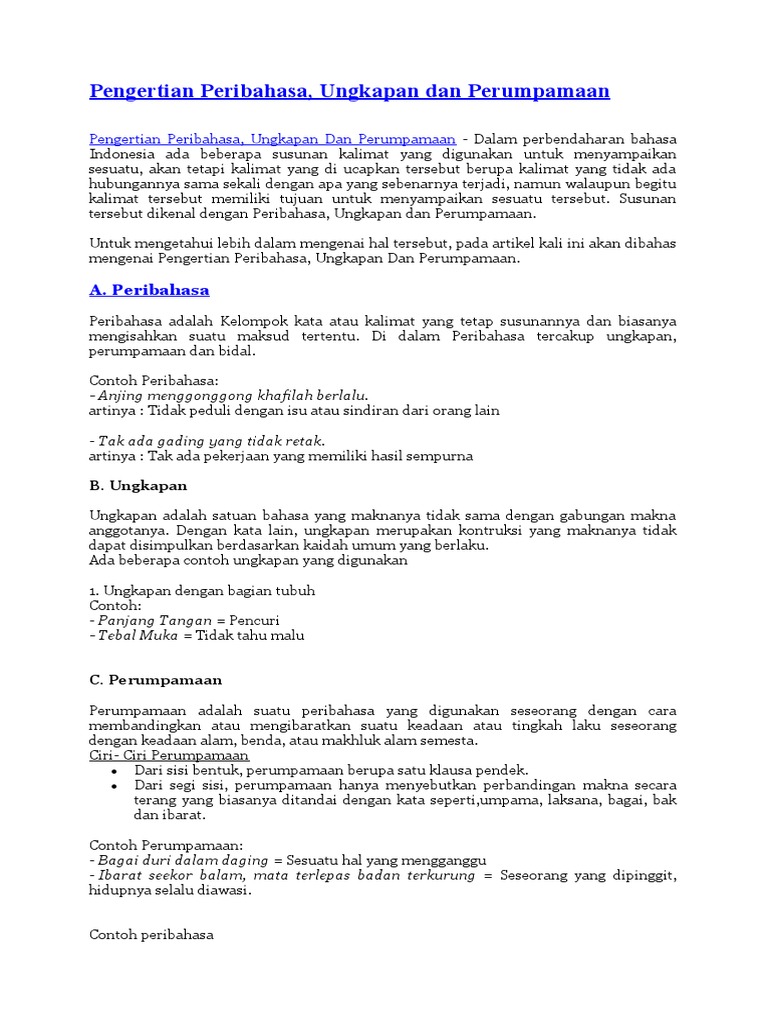 Jika belum kali ini kita akan membahas tentang pengertian ungkapan atau idiom dan contoh ungkapan dan contoh kalimat ungkapan atau idiom. Contoh peribahasa peribahasa adalah salah satu bentuk kebahasaan yang digunakan sebagai alat untuk mengungkapkan suatu hal yang terlintas dalam pikiran manusiadalam peribahasa terkandung makna kiasan yang berisi perbandingan prinsip hidup perumpamaan nasihat aturan aturan tingkah laku dan lain sebagainya. Sebenarnya peribahasa indonesia sudah sering digunakan oleh masyarakat. Kali ini saya akan membantu sahabat siswa yang sedang menyelesaikan tugas bahasa indonesia tentang peribahasa bahasa indonesia dan apa saja artinya. Keanekaragaman adat istiadat budaya dan bahasa di negara indonesia berpengaruh pada perbendaharaan kalimat yaitu peribahasa indonesia. Seperti yang kita ketahui bahwa peribahasa adalah ungkapan atau kalimat kalimat ringkas padat yang berisi perbandingan perumpamaan nasehat prinsip hidup dan aturan tingkah laku.