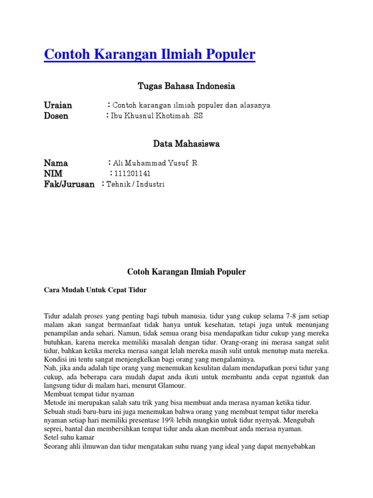Contoh karangan ilmiah populer. Haha yasudah di artikel ini akan saya berikan beberapa contoh karya ilmiah populer terlengkap yang bisa bro sis gunakan sebagai. Contoh karya ilmiah kali ini kita akan membahas pengertian karya ilmiah karaktersitik struktur contoh karya ilmiah remaja populer formal lengkap terbaru singkat dan benar. Download kumpulan contoh karya tulis ilmiah sederhana singkat populer formal dan semi formal remaja bahasa indonesia terbaru 2020. Buat kamu yang sedang mencari contoh ilmiah pdf disini akan membahas mengenai banyak contoh artikel salah satunya seperti judul diatas. Baru mendengar namanya saja pasti telah terbayang akan sulitnya untuk membuatnya. Contoh artikel ilmiah populer singkat remaja.