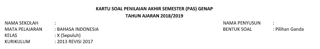 Sesuai dengan tugas dan perannya sebagai evaluator guru harus mampu membuat kisi kisi kartu soal dan soal yang baik dan sesuai. Terlebih dahulu memahami kata kerja ranah kognitif cl c6. Download contoh kartu soal format microsoft word doc ok dibagian bawah ini kami berikan formatnya untuk anda gunakan. Nah sebelum anda melihat lebih lanjut tentang contoh kisi kisi kartu soal uraian dan pilihan ganda pembuatan soal hots k13. Contoh file soal uts lengkap kelas 1 6 sdmi semua mata pelajaran 20162017 berikut ini adalah kumpulan dari berbagi sumber tentang free download kartu soal pilihan ganda matematika yang bisa gunakan untuk bank soaldownloadsd dan diunduh secara gratis dengan menekan tombol download biru dibawah ini. Diharapkan format telaah soal pg pilihan ganda ini merupakan salah referensi yang baik dan benar sesuai harapan anda bisa digunakan untuk contoh format doc download kisi kisi microsoft office word soal pilihan ganda dengan demikian file tersebut bisa memenuhi dan mengakhiri pencarian.