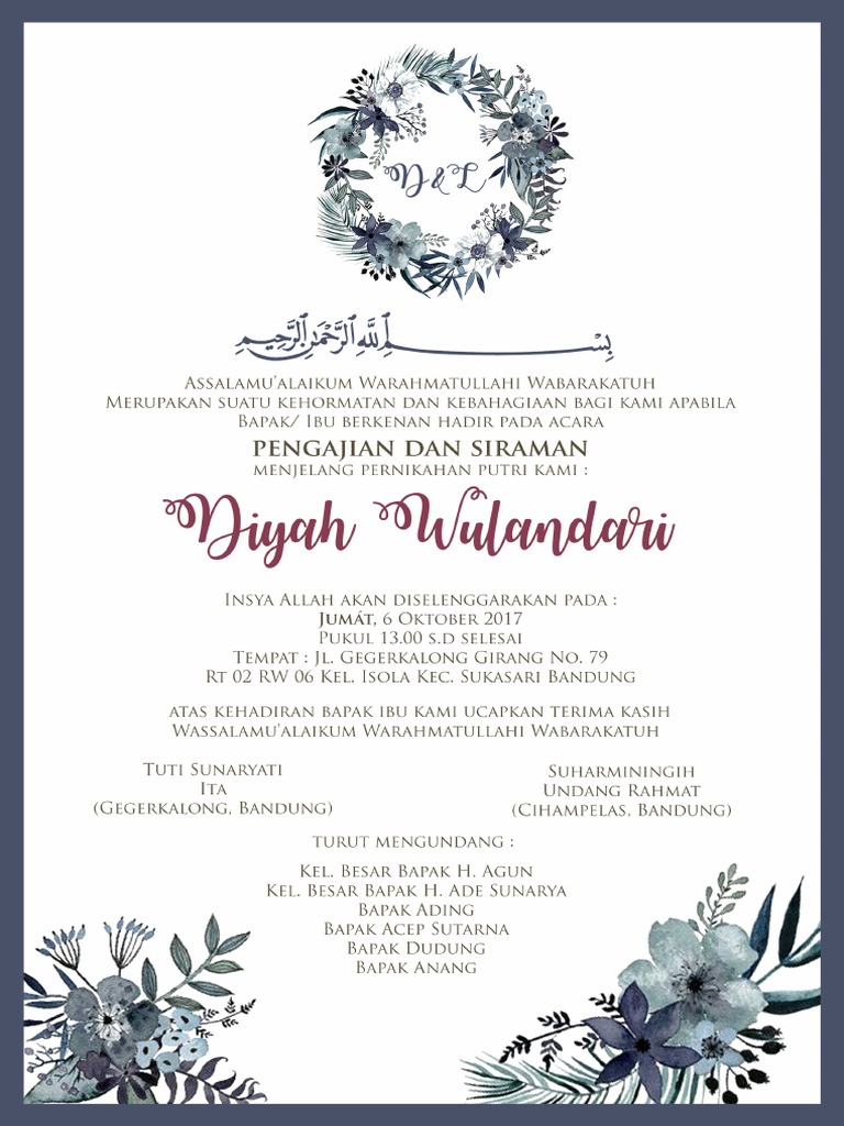 Cetak undangan anda dengan resolusi tinggi yang menakjubkan. Berikut ini adalah 3 jenis surat undangan pernikahan yang dapat anda jadikan inspirasi mulai dari yang unik sederhana hingga elegan. Anda bisa menggunakan referensi undangan pernikahan ini sebagai referensi penulisan isi undangan pernikahan anda. Tentunya dari semua contoh undangan pernikahan di atas baik dan sesuai dengan kaidah penulisan undangan pernikahan. Cobalah pilih contoh undangan yang dianggap paling sesuai. Mendesain undangan ternyata tidak hanya fokus tentang tema atau bentuk yang unik namun penulisan kata kata atau teks dalam isi undangan pernikahan justru harus mendapat perhatian lebih.