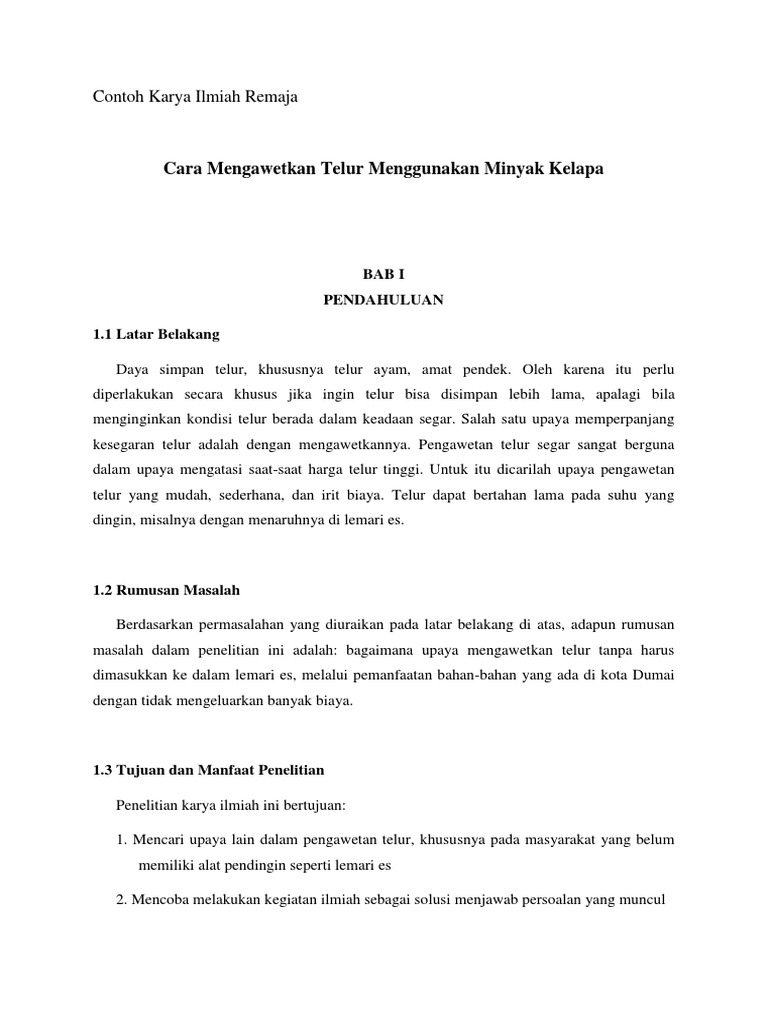 Contoh karya tulis ilmiah tentang pendidikan karakter ini bisa anda download dalam format file doc atau docx microsoft word. Contoh karya ilmiah pendidikan 2016 karya ilmiah merupakan sebuah laporan tertulis dan diterbitkan yang memparkan hasil dari penelitian atau pengkajian yang telah di lakukan oleh seseorang atau tim dengan memenuhi kaidah dan etika keilmuan yang telah di kukuhkan. Salah satu contoh karya ilmiah tentang pendidikan adalah skripsi.