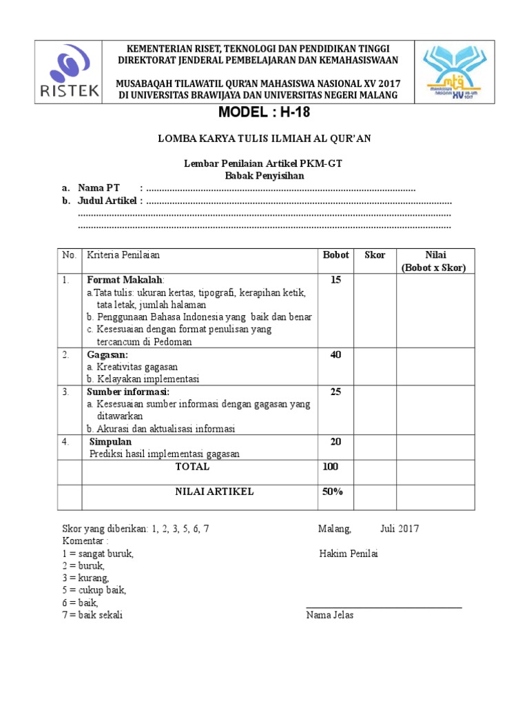 Academiaedu is a platform for academics to share research papers. Setiap perguruan tinggi hanya dapat mengirimkan 1 satu regu maksimal 2 dua orang dengan 1 satu karya tulis ilmiah. Dalam catatan sejarah terutama jika menggunakan kalender hijriyah hari ini adalah hari lahir nabi muhammad sawseperti yang kita tahu beliau lahir bertepatan dengan penyerangan kabah oleh pasukan gajah. Musabaqah karya tulis ilmiah kandungan al quran adalah lomba menulis karyailmiah tentang ilmu pengetahuan dan kehidupan sosial yang dikaitkan dengan isi kandungan al quran. Disusun untuk mengikuti lomba karya tulis al quran tingkat universitas. Koko triantoro 07312241020 nur jamilatul khafidzoh 05307141039 fakultas matematika dan ilmu pengetahuan alam.