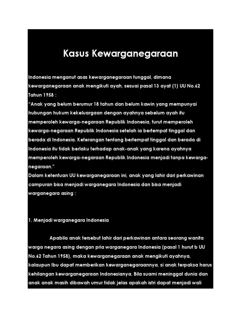 Contoh kasus kewarganegaraan ganda di indonesia. Semoga bisa dijadikan pelajaran dan agar kita sebagai wni bisa lebih menghargai arti penting kewarganegaraan. Di indonesia sendiri masih banyak problem problem mengenai kewarganegaraan dan yang sering terjadi disini ialah status kewarganegaraan ganda atau bipatride. Di era kekinian ini kita sering menjumpai kasus kasus orang yang berkewarganegaraan ganda atau bipatride yang disebabkan mulai dari berpergian keluar negeri sehingga menikah dengan orang. Beberapa contoh kasus kewarganegaraan di indonesia antara lain. Untuk melengkapi artikel tersebut pada kesempatan kali ini akan kita bahas 4 asas kewarganegaraan yang berlaku di indonesia beserta contonya. Jangan sampai kita kehilangan kewarganegaraan indonesia karena ternyata ada yang bersusah payah untuk berjuang mendapat pengakuan kewarganegaraan dari indonesia.