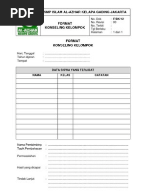 Sedangkan kegiatan konseling kelompok merupakan salah satu layanan konseling yang di selenggarakan dalam suasana kelompok yang memanfaatkan dinamika kelompok serta terdapat hubungan konseling yang hangat terbuka permisif dan penuh keakrabanhal ini merupakan upaya individu untuk membantu individu agar dapat menjalani perkembangannya dengan lebih lancar upaya itu bersifat preventif dan. Mengubah sistem nilai klien. Layanan konseling kelompok adalah suatu proses antar pribadi yang dinamis terpusat pada pikiran dan perilaku yang disadari dibina dalam suatu kelompok kecil mengungkapkan diri kepada sesama anggota dan konselor dimana komunikasi antar pribadi tersebut dapat dimanfaatkan untuk meningkatkan pemahaman dan penerimaan diri terhadap nilai nilai kehidupan dan segala tujuan hidup serta untuk. Setelah kita melaksanakan layanan ini alangkah baiknya untuk sesegera mungkin untuk membuat laporannya. Pelaksnaan konseling kelompok ini dilakukan di ruang bimbingan dan konseling dengan konselor sendiri sebagai pemimpin kelompok. Contoh studi kasus dalam bimbingan dan konseling yusup friday june 29 2012 0 comment administrasi bk.
