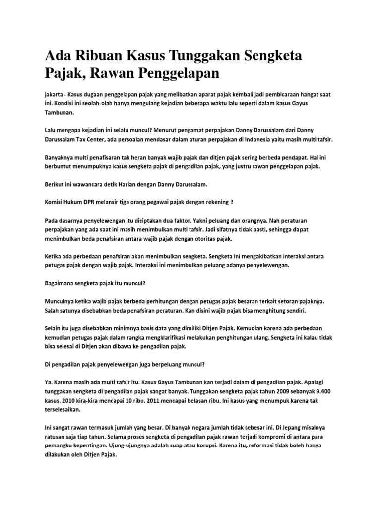 Kasus kasus perpajakan di indonesia. Contoh masalah pajak di indonesia. Hakim menilai soetijono terbukti menyampaikan spt masa ppn masa pajak januari desember 2007 dengan tidak benar. Kasus beberapa perusahaan teknologi informasi asing yang menolak untuk membayar pajak kepada pemerintah sempat menggegerkan masyarakat. Posting pada sd ditag akibat pengingkaran kewajiban membayar pajak berikut beberapa sifat kewajiban kecuali berita tentang hak dan kewajiban warga negara berita terkini tentang hak dan kewajiban contoh kasus hukum perjanjian dan penyelesaiannya contoh kasus pasal 26 ayat 1 contoh kasus pelanggaran hak contoh kasus perjanjian kontrak. Ia pun kemudian ditetapkan sebagai tersangka dengan hukuman 7 tahun penjara.