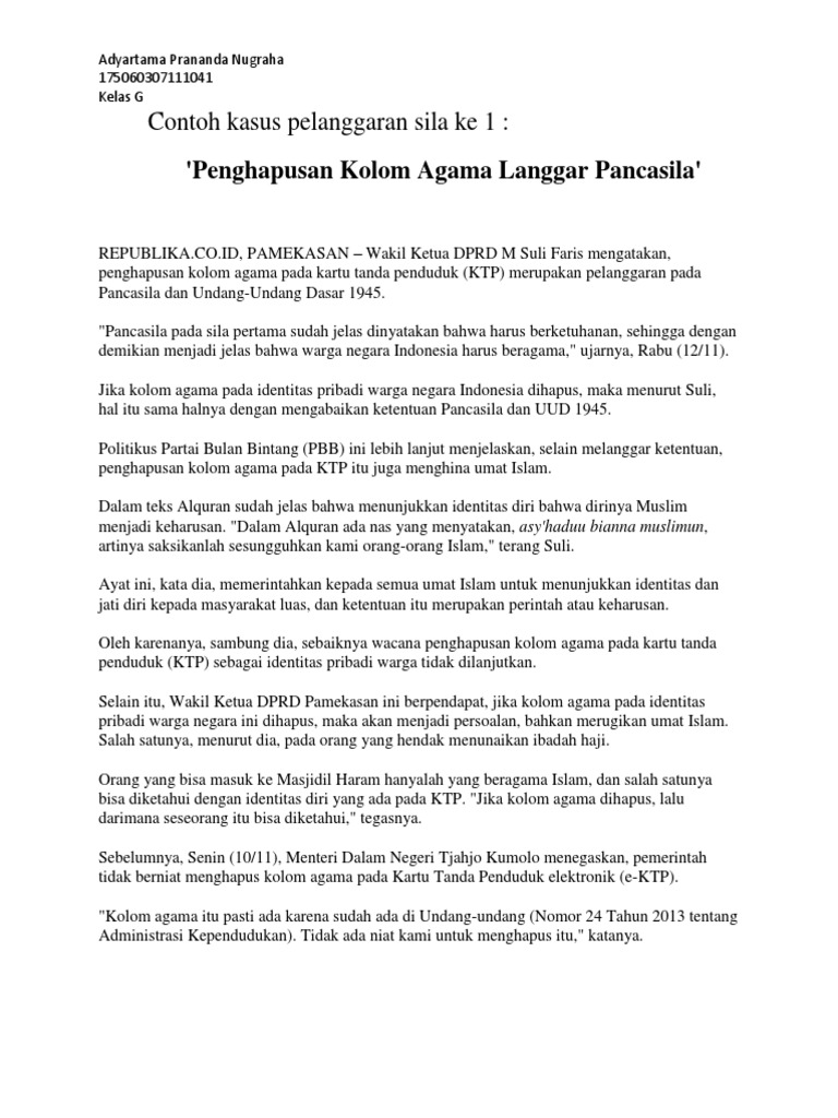 Contoh kasus pelanggaran pancasila sila ke 2. Contoh makalah kewirausahaan. Pasal yang terkait dengan kasus cebongan tersebut adalah undang undang pidana pasal 351 358 kuhp tentang penganiyaan dan pasal 185 338 340 342 343 dan 350 kuhp yang berkaitan tentang pembunuhan. Pelanggaran yang pertama adalah menghilangkan hak untuk hidup bagi seseorang. Salah satu isi dari pancasila tersebut adalah kemanusiaan yang adil dan beradab yang merupakan sila ke 2 pancasila. 7 contoh pelanggaran sila ke 2 di sekolah yang sering terjadi lengkap. Banyak kasus kasus yang bermunculan di negara indonesia ini.