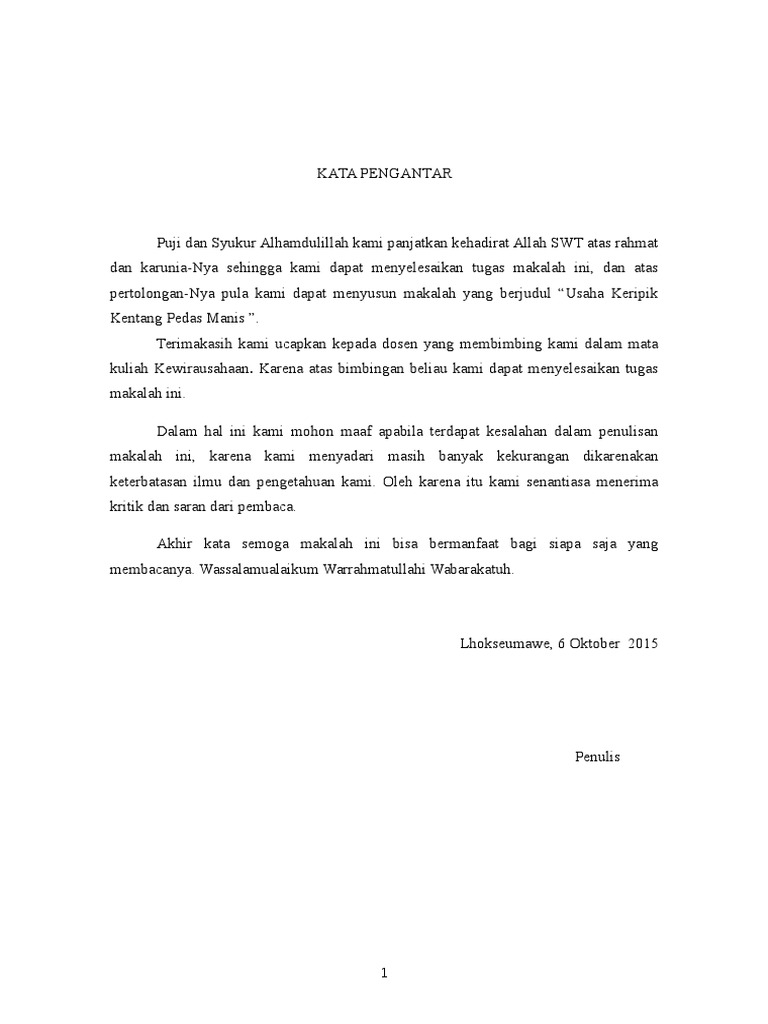 Namun ada beberapa yang masih merasa bingung untuk membuat kata pengantar yang baik dan benar sesuai dengan kaidah kaidah bahasa indonesia. Puji syukur alhamdulillah kami panjatkan ke hadirat tuhan yang maha esa karena telah melimpahkan rahmat nya berupa kesempatan dan pengetahuan sehingga makalah ini bisa selesai pada waktunya. Dengan menyebut nama allah swt yang maha pengasih dan maha penyanyang. Karena makalah atau laporan akan terlihat kurang baik dan lengkap bila tidak disertai dengan ucapan kata pengantar di dalamnya. Dalam hal pembuatannya tentunya ada tata caranya mulai dari teknik penulisan makalah format halaman spasi ukuran kertas. Kata pengantar biasanya terletak didepan suatu karya tulis ilmiah.