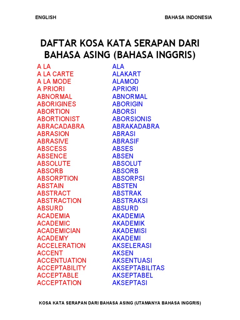 Kata serapan pengertian daftar bahasa arab penulisan contoh dosenpendidikancom secara etimologi kata dalam bahasa melayu dan indonesia diambil dari bahasa sansekerta kathā. Karena mengingat hingga kini bahasa indonesia masih tergolong bahasa yang baru dan berkembang.