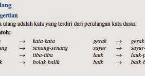 Sebenarnya adalah kata utama. Kata yang sebenarnya merupakan kata dasar dan bukan hasil pengulangan atau reduplikasi. Sedangkan pada kata ulang semu cumi cumi kata cumi tidak bisa berdiri sendiri. Kata ulang berimbuhan kata ulang berimbuhan atau kata ulang sebagian yaitu bentuk pengulangan kata dengan mendapat awalan sisipan akhiran atau gabungan imbuhan sebelum atau sesudah kata dasarnya diulang. Jenis kata ulang yang satu ini ialah kata yang mengalami suatu proses pengulangan seluruhnya tetapi tidak bisa dipisahkan misalnya pada kupu kupu laba laba umang umang pura pura lain sebagainya. Kali ini akan dibahas juga salah satu jenis kata ulang berdasarkan bentuknya yaitu kata ulang semu.