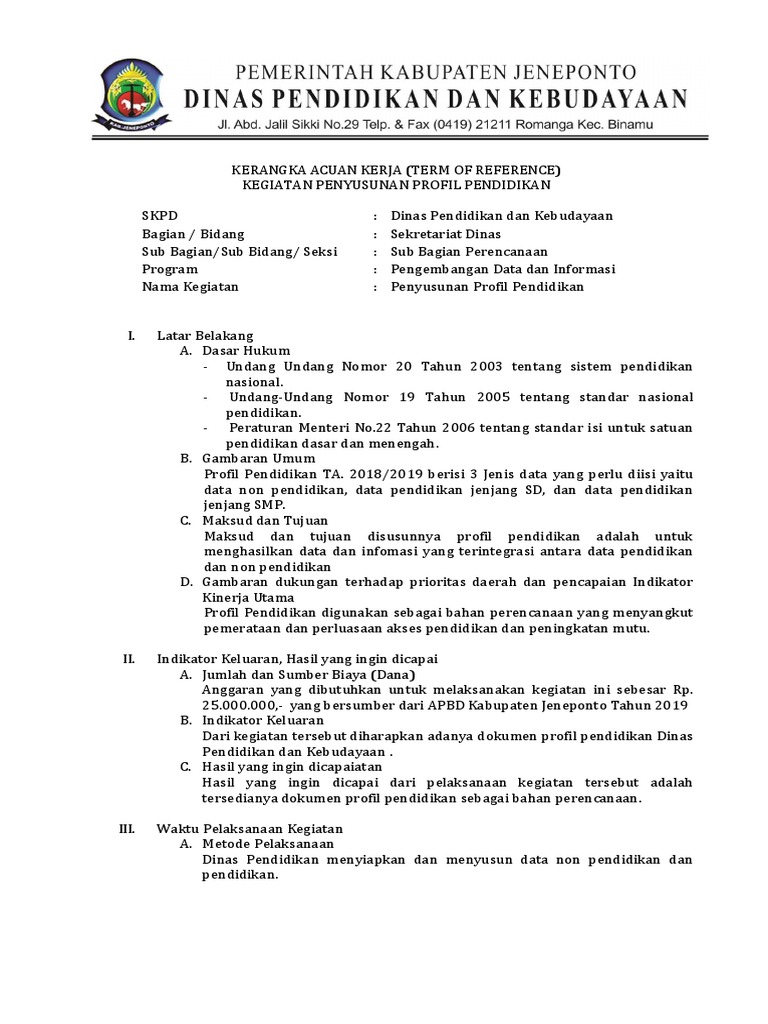 Contoh kerangka acuan kerja kegiatan skpd. Penyusunan kerangka acuan kerja k ak i ni dimaksudkan untuk dapat menjadi salah satu acuan dan pedoman dalam pelaksanaan penyusunan rencana anggaran pendapatan dan belanja. Kerangka acuan kerja rapat monitoring dan evaluasi rencana aksi daerah rad pangan dan gizi provinsi jawa tengah tahun 2015 2019 view. Penutup demikian kerangka acuan kegiatan ini dibuat untuk dapat dipergunakan sebagai pedoman dalam pelaksanaan kegiatan. Penyusunan kerangka acuan kerja kak. Kerangka acuan kerja atau juga disebut term of reference tor pengadaan barang adalah suatu dokumen yang menginformasikan gambaran latar belakang tujuan ruang lingkup dan struktur sebuah proyek pengadaan barang yang telah disusun oleh skpddinas terkait. Satuan kerja perangkat aceh skpa dalam lingkup pemerintah aceh c.