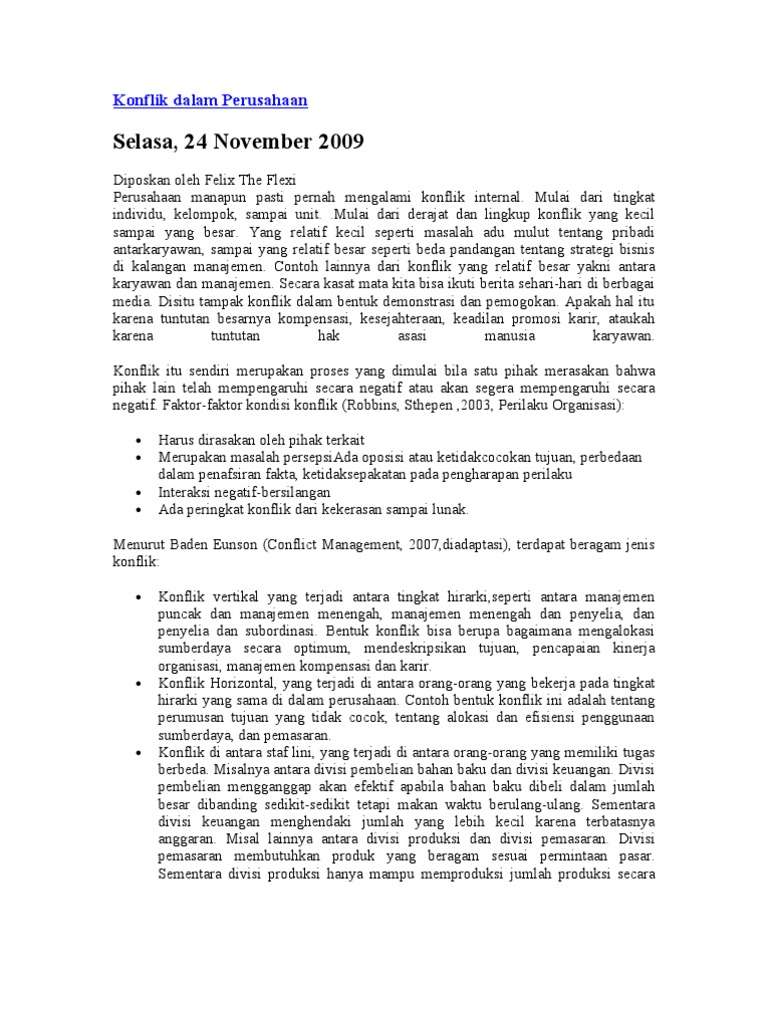 Oke pada postingan kali ini saya di suruh oleh dosen softskill untuk mencari sebuah contoh konflik dalam suatu organisasi. Dinamika konflik dalam organisasi pdf jurnal.
