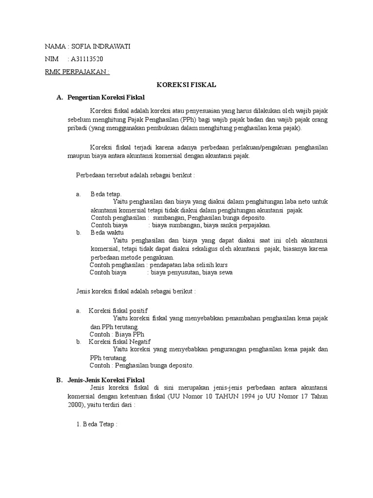 Contoh koreksi fiskal positif dan negatif. Sedangkan koreksi fiskal negatif adalah perbaikan yang dilakukan justru hasilnya mengurangi jumlah biaya pajak. Intinya tujuan dari koreksi positif adalah menambah laba komersil atau laba penghasilan kena pajak phkp. Koreksi fiskal positif koreksi fiskal positif adalah koreksipenyesuaian yang akan mengakibatkan meningkatnya laba kena pajak yang pada akhirnya akan membuat pph badan terhutangnya juga akan meningkat. Jenis koreksi fiskal positif antara lain sebagai berikut ini. Pembagian laba dengan nama dan dalam bentuk apapun seperti dividen termasuk dividen yang dibayarkan oleh suatu perusahaan asuransi kepada pemegang polis dan pembagian sisa hasil usaha koperasi. Koreksi fiskal ada dua macam yakni koreksi fiskal positif dan koreksi fiskal negatif.