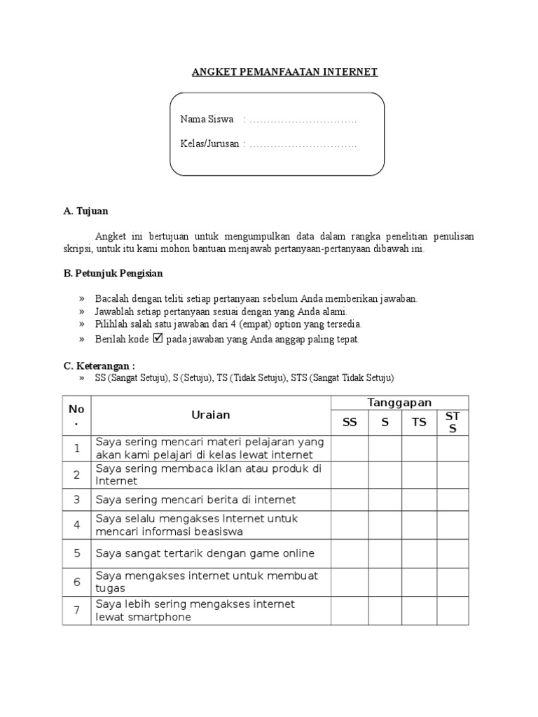 Pengertian angket tertutup adalah angket yang menyajikan pertanyaan dan pilihan jawaban sehingga responden hanya dapat memberikan tanggapan terbatas pada pilihan yang diberikan. Hal hal yang perlu diperhatikan dalam membuat kuesioner. Contoh angket terbuka dan tertutup angket tentang tingkat kedisiplinan. Hal hal yang perlu diperhatikan dalam membuat kuesioner. Contoh angket terbuka dan tertutup angket merupakan instrument penelitian yang biasanya digunakan untuk memperoleh jawaban responden seputar sikap ataupun tanggapan responden mengenai suatu hal tertentu. Sedangkan kuesioner terbuka dan tertutup merupakan kuesioner yang berisi perpaduan antara pertanyaan terbuka dan tertutup.