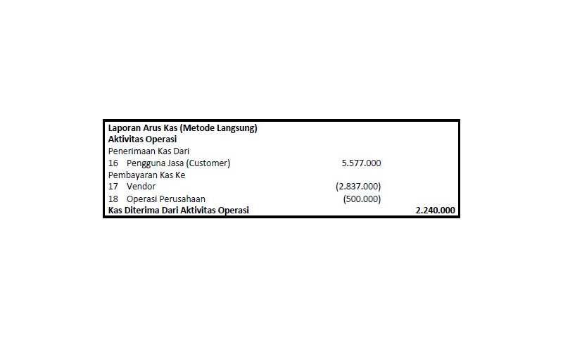 Laporan arus kas keungan perusahaan juga biasa disebut sebagai cashflow reportfungsi dari laporan keuangan ini adalah melacak pemasukan dan pengeluaran dari seluruh kegiatan operasi transaksi investasi transaksi pembiayaanpendanaan mapupun kenaikan atau penurunan bersih dalam kas suatu perusahaan selama periode tertentu. Menurut psak no2 2002 5 arus kas adalah arus masuk dan arus keluar kas atau setara kas. Laporan arus kas adalah laporan keuangan yang sumbernya dari penggunaan kas. Salah satu caranya adalah melihat dari laporan arus kas mereka. Laporan arus kas terdiri untuk kas dan setara kas terdiri atas kas giro bi dan giro pada bank lain. Contoh laporan arus kas metode langsung dan tidak langsung secara umum bentuk laporan arus kas yang berlaku terdiri atas metode langsung direct method dan tidak langsung indirect method.