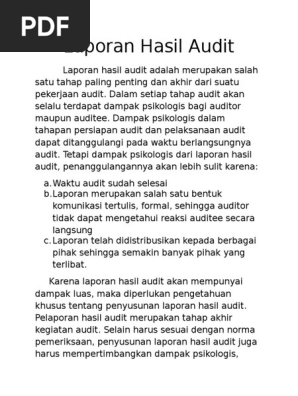 Contoh laporan hasil pemeriksaan. Dalam laporan hasil audit sebagaimana diatur dalam paragraf 4200 tentang bentuk dan isi laporan hasil audit auditor diwajibkan untuk mengungkapkan metodologi audit yang digunakan dalam pelaksanaan audit kinerjanya dan dengan sendirinya dituntut pula untuk melaksanakan auditnya sesuai dengan metodologi audit yang dipilih. Berita acara pemeriksaan hasil pekerjaan. Standar pemeriksaan keuangan negara. Hasil pemeriksaan hukum pemeriksaan hukum perseroan kami lakukan sampai dengan tanggal dan lhph ini kami bagi atas 6 enam kelompok besar pembahasan yaitu sebagai berikut. Laporan hasil reviu atas pelaksanaan transparansi fiskal. Format program kerja pengawasan reguler.