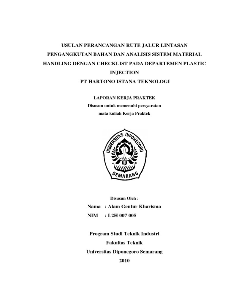 Save save laporan kerja praktek teknik industri itb for later. Unilever indonesia tbk surabayajawa timur. Adapun maksud dari penyusunan laporan kerja praktek ini adalah memenuhi salah satu persyaratan untuk menyelesaikan program studi di jurusan teknik industri. Laporan ini telah diterima setelah diperiksa oleh pembimbing lapangan sebagai bukti bahwa saya telah melaksanakan praktek kerja industri prakerin tanggal 7 februari sd 6 mei 2013 dengan baik dan sebagai salah satu syarat untuk mengikuti ujian akhir sekolah uas dan ujian nasional un. Mungkin sekarang lagi musimnya praktek kerja industrimaka dari itu karya tulis akan share contoh kata pengantar laporan prakerin semua jurusan. Tujuan dari penyusunan laporan praktek kerja industri ini adalah untuk memenuhi salah satu syarat dalam menempuh ujian akhir prakerin tahun pelajaran 20122013laporan ini disusun berdasarkan data yang sesungguhnya yang penulis dapatkan selama melaksanakan praktik kerja industri di dd computer system.