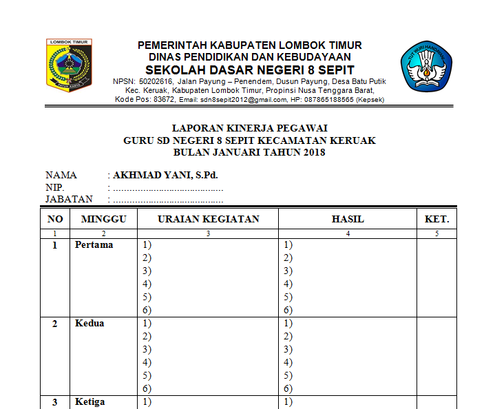 Di bawah ini contoh format laporan kinerja bulanan pns dokter pertamaformat ini untuk dokter pegawai negeri sipil yang masih dalam tingkat pertama yang bekerja di rumah sakit dan puskesmas. Isian laporan kinerja bulanan dokter pertama pns. Dengan demikian maka secara umum semua. Jika kalian kerja menjadi pegawai atau karyawan pns maupun proyek kontraktor. Melaksanakan penilaian kompetensi pegawai di lingkungan kemdikbud 1 laporan 100 8 bulan rp 65 juta c. Mudah mudahan dengan tulisan ini dapat memberikan pencerahan bagi guru pemula termasuk saya dalam menyusun skp dengan baik dan sesuai dengan acuan yang dituangkan dalam peraturan pemerintah nomor 46 tahun 2011 tentang penilaian prestasi kerja pegawai negeri sipil.