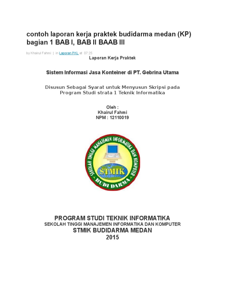 Jurusan teknik informatika juga dapat mengambil skripsi mengenai jaringan. Contoh laporan pkl teknik informatika bab i. Begitulah yang dapat admin bagikan terkait contoh judul laporan kerja praktek teknik informatika. Latar belakang praktek kerja nyata. Contoh umum misalnya seperti negara. Contoh laporan kuliah kerja praktek kkp tentang analisa pembayaran iuran siswa berhubung udah lulus2an kuliah sebentar lagi wisuda.