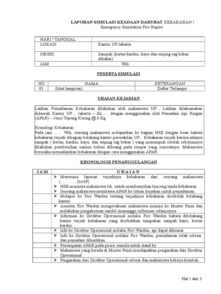 Petugas pemadam kebakaran tak cepat tiba di lokasi lantaran telat menerima laporan warga. Misalnya seperti laporan pengamatan study tour karya wisata kegiatan kejadian kerja peristiwa dan sebagainya. Contoh laporan kronologi laporan kronologi dibuat untuk berbagai tujuan. Menurut keterangan salah satu karyawan arief peristiwa itu terjadi sekitar pukul 1730 wib. Meskipun tidak ada korban jiwa peristiwa ini tetap saja mengakibatkan kerugian materi hingga 800 juta rupiah. Contoh laporan peristiwa kita tahu bahwa ada banyak sekali jenis format dari laporan singkat.