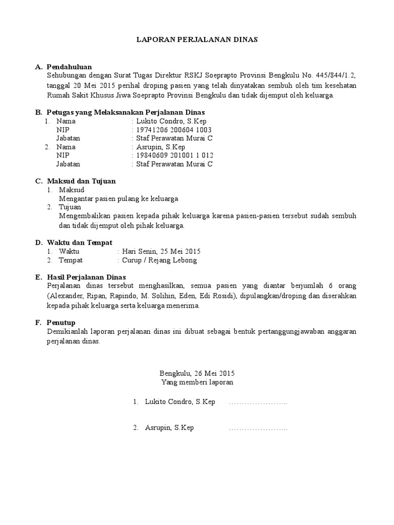 170 jakarta surat perja. Laporan hasil perjalanan dinas i. Demikian laporan pertanggung jawaban ini kami buat dengan sebaik baiknya dengan harapan laporan kegiatan ini dapat menjadi acuan demi perkembangan kegiatan kegiatan serupa pada periode berikutnya. Namun jika dalam laporan pertanggungjawaban ini ada suatu hal yang. Maka dari itu di susunlah laporan inidengan maksud untuk sebagai acuan dan dapat mempermudah dalam mengadakan perjalanan bisnis agar lebih efektif dan efesien. Perjalanan bisnis merupakan perjalanan ke suatu tempat kerja yang berbeda letaknya bisa di dalam maupun di luar kota atau bahkan luar negeri.