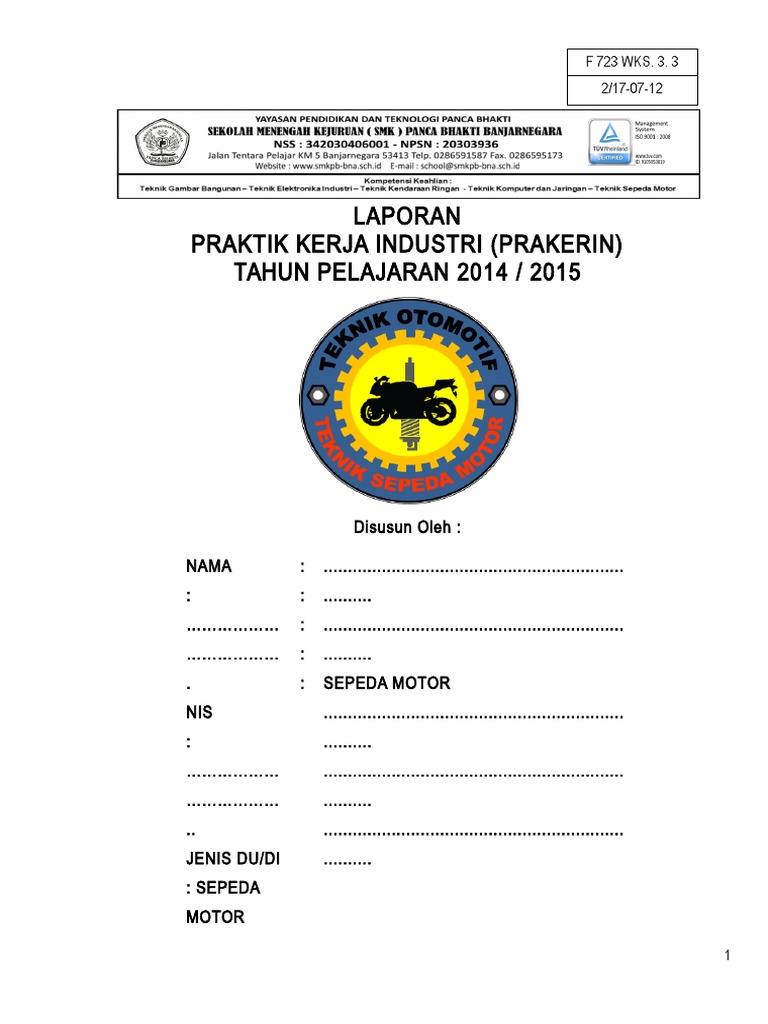 Para peserta kegiatan pkl praktek kerja lapangan mempunyai kewajiban yang harus dipenuhi untuk menyelesaikan laporan ini. Buku harian tsm contoh laporan. Puji syukur penulis panjatkan kehadirat allah swt yang telah melimpahkan rahmat serta hidayah nya sehingga penulis dapat menyusun laporan hasil pelaksanaan prakerin yang telah penulis laksanakan pada dunia usaha kurang lebih tiga bulanadapun penyusunan laporan prakerin ini di maksudkan untuk memenuhi salah satu syarat untuk mengikuti ujian nasional berbasis computer di smk pena nugraha indonesia. Penulis mengambil judul cvt karena penulis ingin belajar lebih jauh tentang cvt. Laporan prakerin cvt perawatan dan perbaikan system cvt continus variable transmisi pada sepeda motor yamaha mio gt 2014. Contoh laporan prakerin tsm teknik sepeda motor 2016 video lucu euro truck simulator 2.