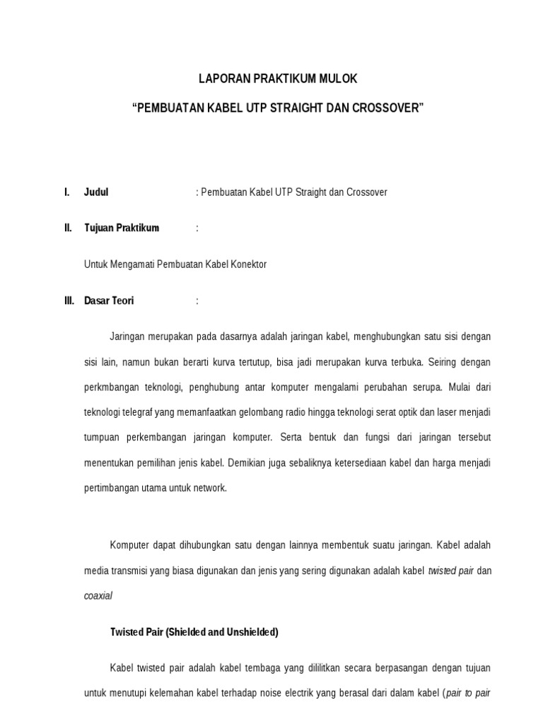Laporan kegiatan praktikum aplikasi komputer i mata kuliah aplikasi komputer i adalah salah satu mata kuliah yang harus ditempuh mahasiswa jurusan pendidikan matematika di semester 3. Kami sangat berharap laporan ini dapat berguna dalam rangka menambah wawasan serta pengetahuan kita mengenai cara perakitan komputer yang baik dan juga permasalahan yang dihadapi dalam perakitan komputer. Kami juga menyadari sepenuhnya bahwa di dalam laporan ini terdapat kekurangan dan jauh dari kata sempurna. Pertama kali komputer ditemukan belum bisa berkomunikasi dengan sesamanya. I sistem perkabelan utp pengalamatan dan basic tcpip jurusanprogram studi teknik informatika fakultas teknik. Pada saatitu komputer masih sangat sederhana.
