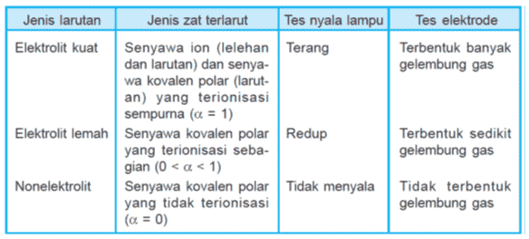 Perbedaan Sifat Larutan Elektrolit Kuat Lemah Dan