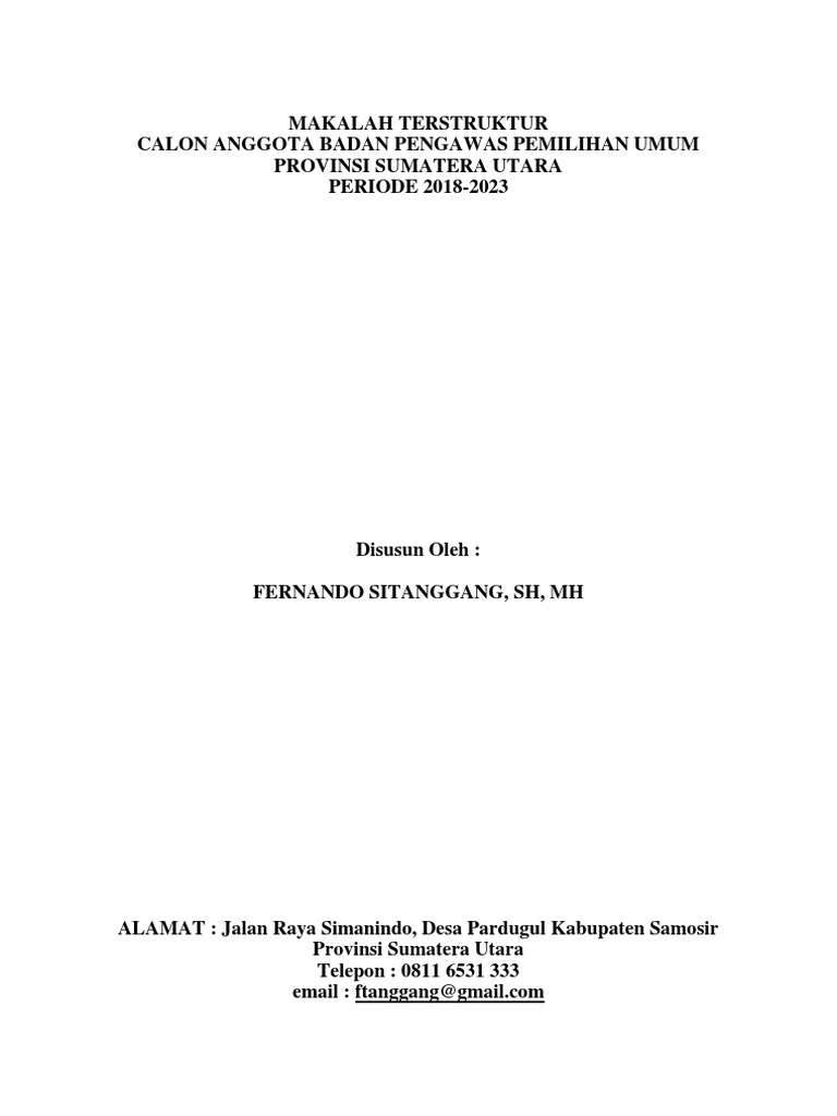 Contoh makalah terstruktur calon anggota kpu 2018. Seleksi calon anggota kpu kabupaten kutai timur. Pengumuman pendaftaran calon anggota panwaslu kabupatenkota dalam provinsi sumatera selatan. Sebelas kabupatenkota dalam provinsi sumatera. Sipil yang akan mengikuti seleksi. Pedoman penyusunan makalah terstruktur 6. Formulir kelengkapan administrasi persyaratan calon anggota kpu kabupaten kota periode 2018 2023 dan keterangan lebih lanjut dapat diperoleh di kpu.